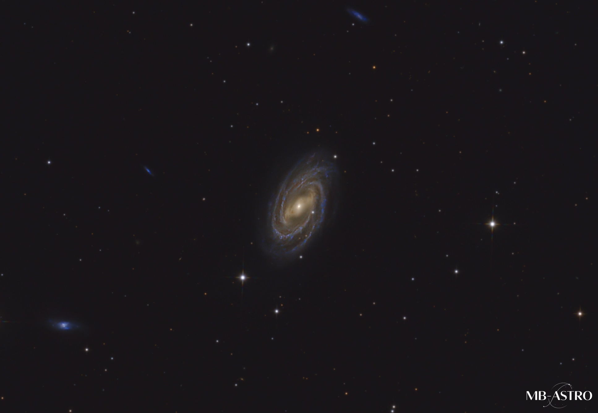 Typisch für eine SBc-Galaxie besitzt M109 einen ausgeprägten zentralen Balken, von dem sich mehrere locker gewundene Spiralarme ausbreiten. Diese Struktur ist besonders in Langzeitbelichtungen gut sichtbar: Der helle Balken schneidet das Zentrum der Galaxie und zieht sich auffällig horizontal durch das Bild. In den Spiralarmen erkennt man H-II-Regionen, Sternentstehungsgebiete und feinste Staubstrukturen, die sich in ruhigen, schwungvollen Bögen um das Zentrum winden.